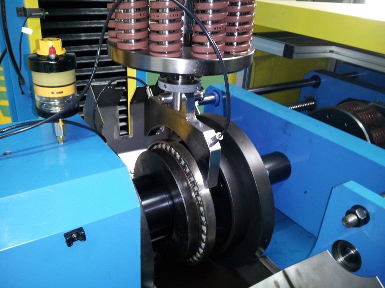 maintains a constant force on each load apply system while rotating the test part at the desired test speed. The test is complete when either the test part fails or the required  umber of rotations is reached.