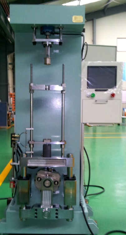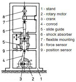 Testing removed shock absorbers Testing equipment is a special dynamometer (shown in Figure). The damping force is measured for variable speed of motion and strokes in this case. The advantage of testing on removed shock absorbers is that the characteristics are not affected by the entire suspension system (stiffness of tyres, arms, joints and springs). |